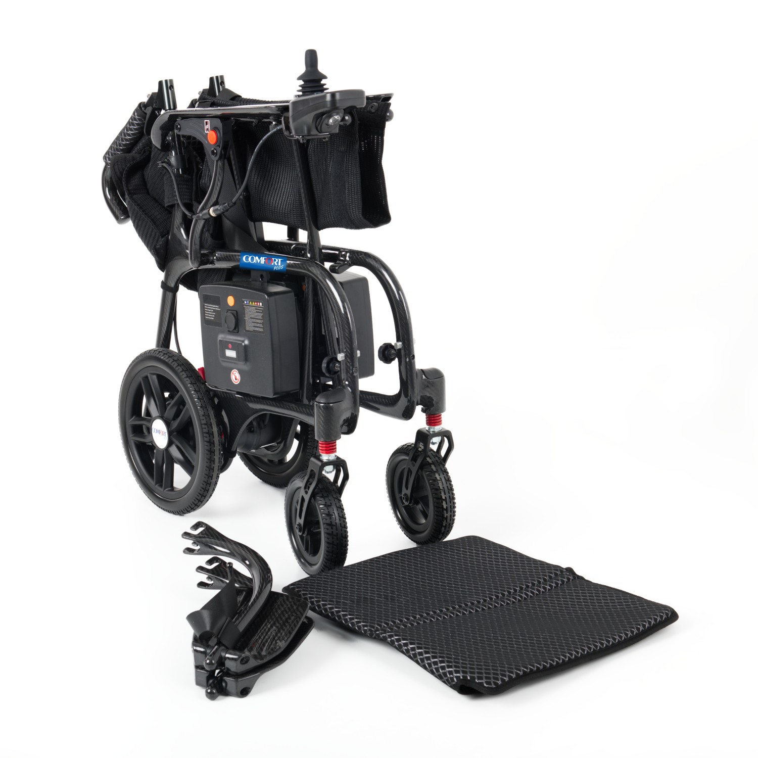 Comfort Plus DY01107 Karbon Lityum Pilli Akülü Tekerlekli Sandalye – Ultra hafif karbon fiber gövdesi ile güç, dayanıklılık ve konforu bir arada sunar. Katlanabilir tasarımı, uzun ömürlü lityum pil teknolojisi ve joystick kontrollü sürüş sistemiyle şehir içi ve seyahat kullanımına mükemmel uyum sağlar. Hafif, sağlam ve taşınabilir yapısıyla günlük hayatınızı kolaylaştırır.